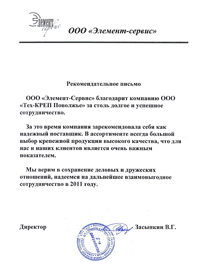 благодарит ООО "Тех-КРЕП Поволжье" за