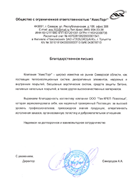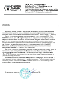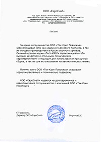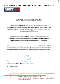 благодарность ООО «Тех-КРЕП Урал» за поставку