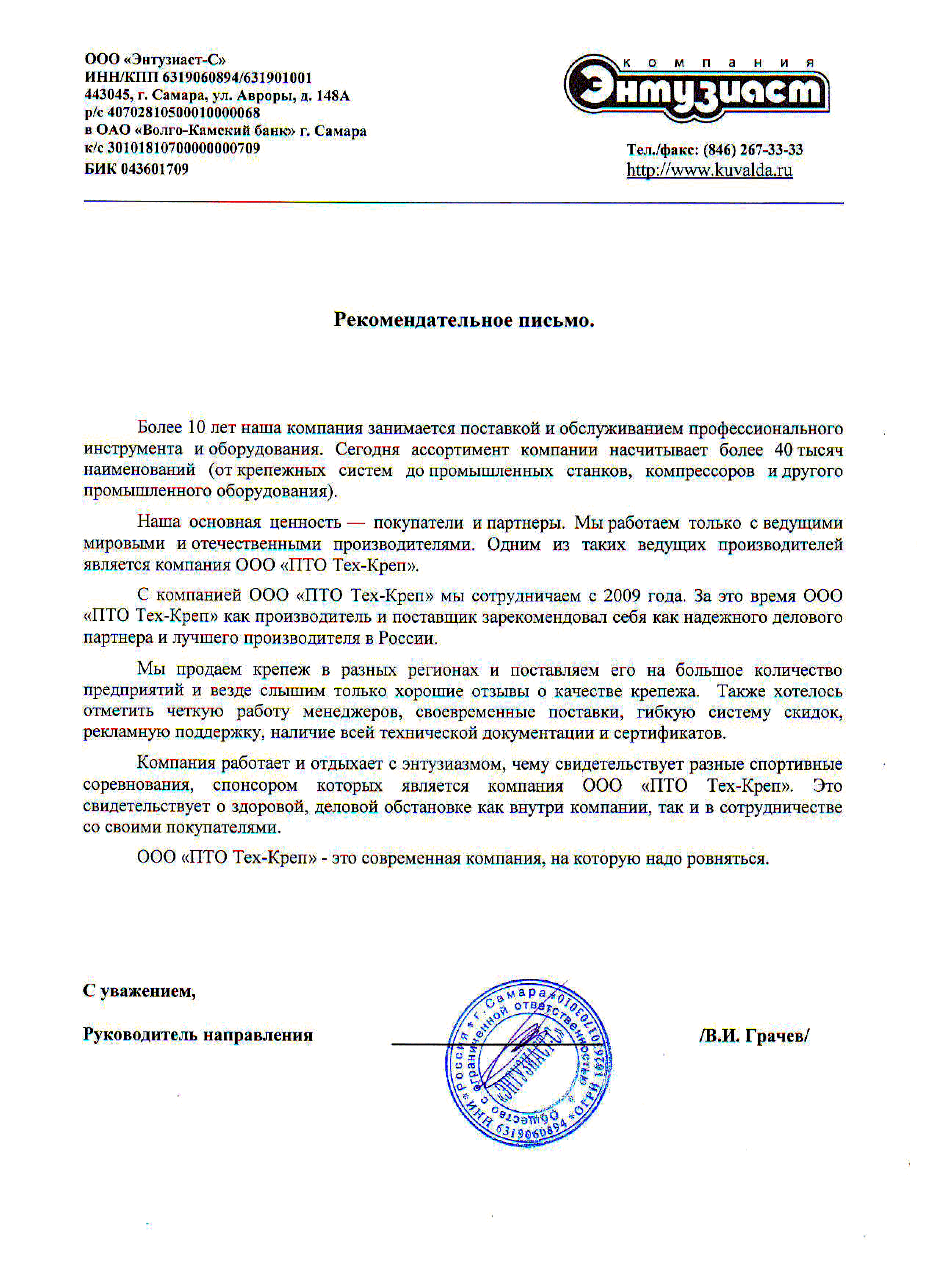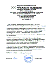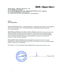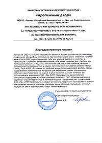 благодарность ООО «Тех-КРЕП Урал» за поставку